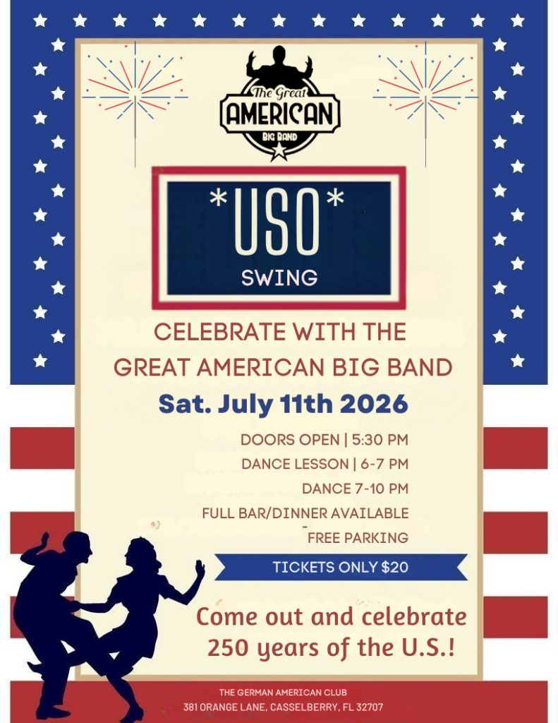 - Saturday, July 11th (SECOND SAT.) – USO Dance