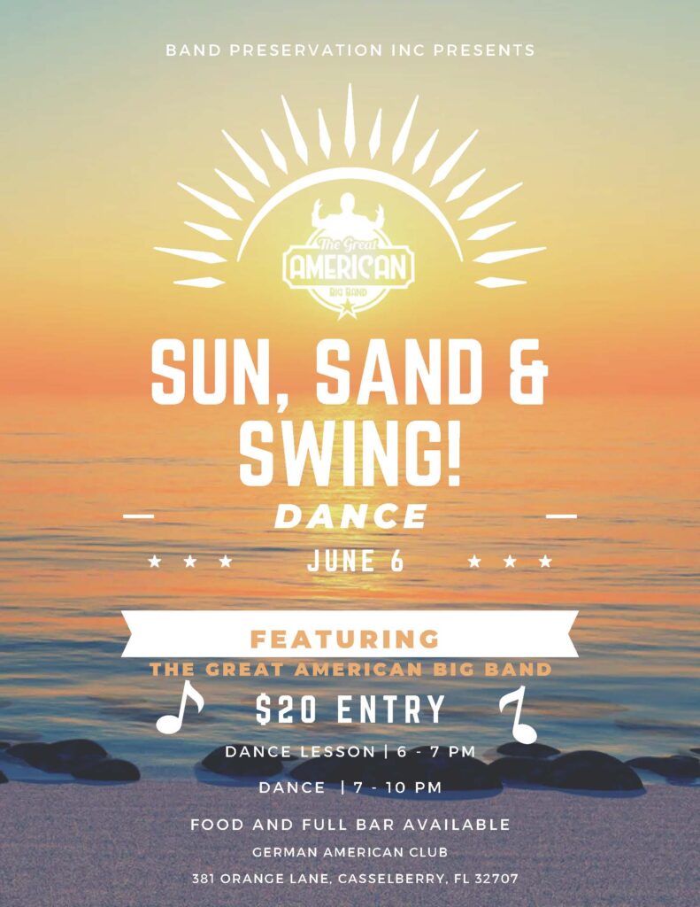 - Saturday, June 6th – Sun, Sand, & Swing Dance